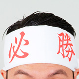 支援活動の定番!三色ハチマキに続いて、白地に赤字で「必勝」の文字が映えます。