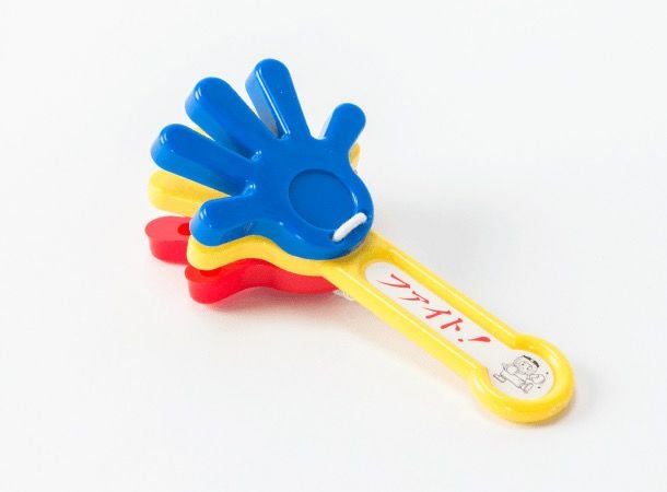 三色カラーの“てのひら”の形をしたカスタネットで、会合を賑やかに盛り上げましょう!
