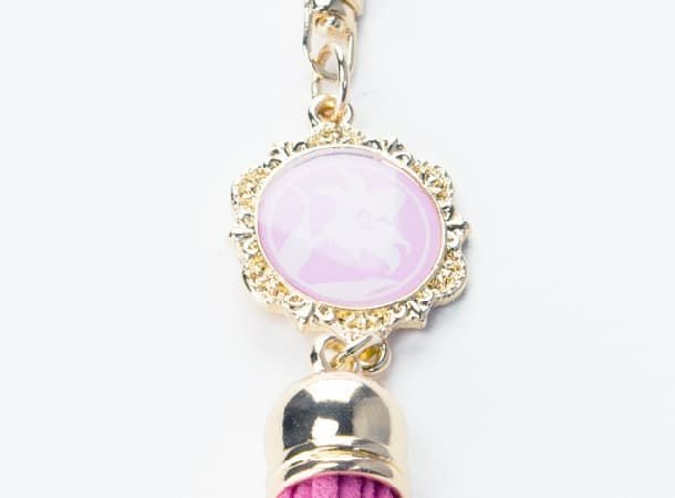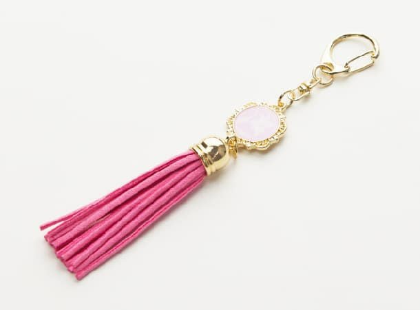 さりげない白ゆりのチャームとピンクのタッセルが可愛らしいキーホルダーです。