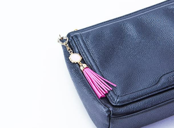 バッグの柄や、小物などに取り付けやすい金具を採用しています。