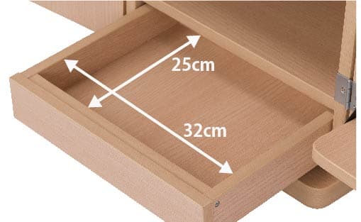 経机がわりにお使いいただける、36cm×24.5cmのスライド式のテーブル。使わない時は奥にしまえて、とても便利です。