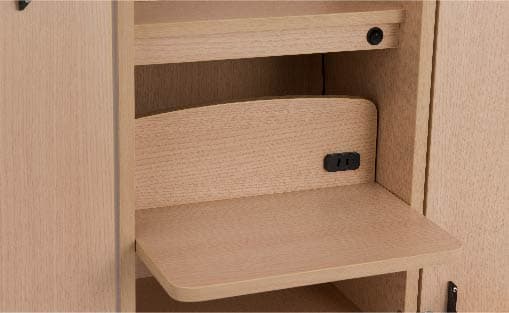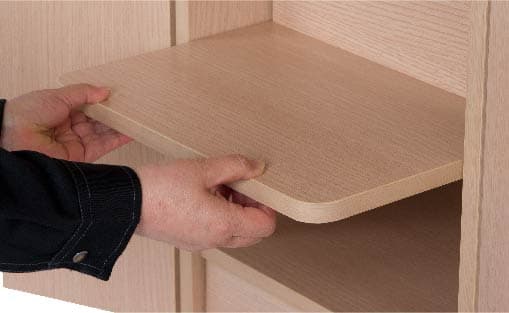 仕上げ加工に、耐熱性・耐久性・耐摩擦性に優れた低圧メラミン化粧板を使用しており、お手入れがしやすいのが特徴です。