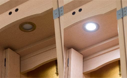 暖かみを帯びた暖色のLEDライトを完備。「省エネ設計」「電球の長寿命」など、とても機能性に優れています。
