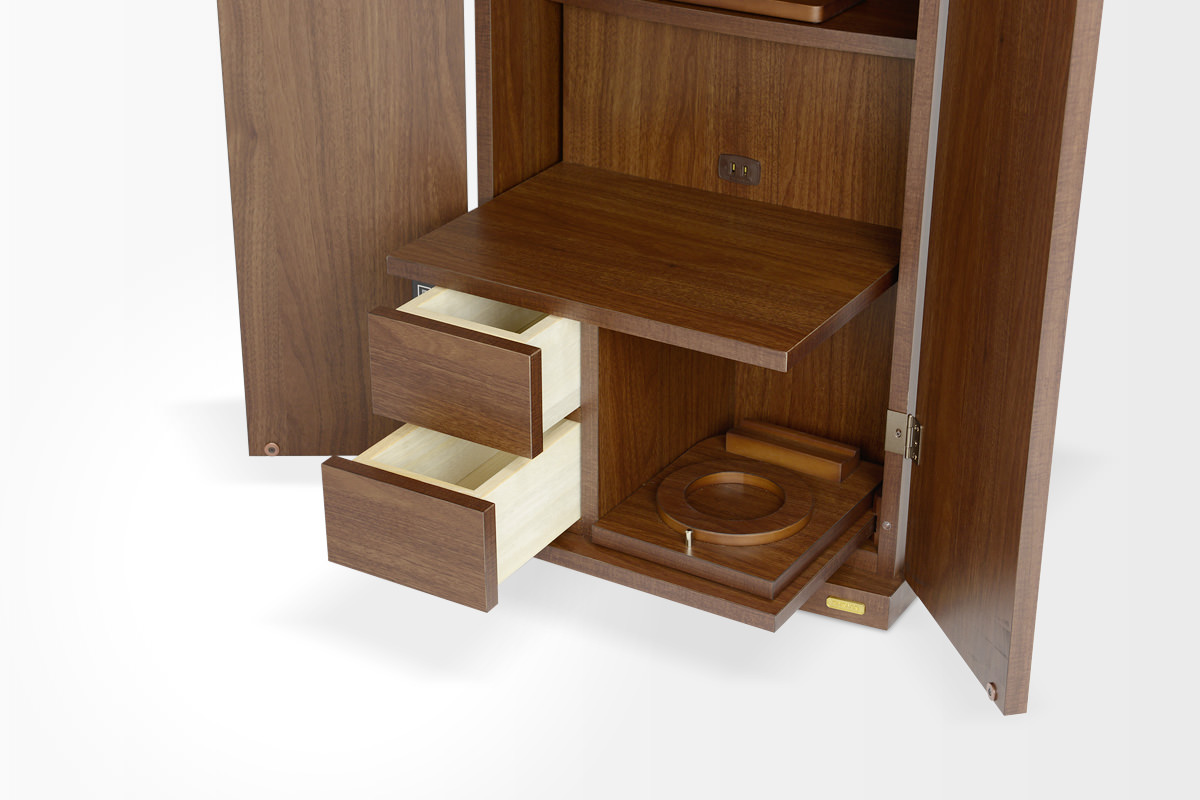 使い勝手の良いこの引き出しは、お念珠・お経本など、よく使われる物を、収納するのに最適です。