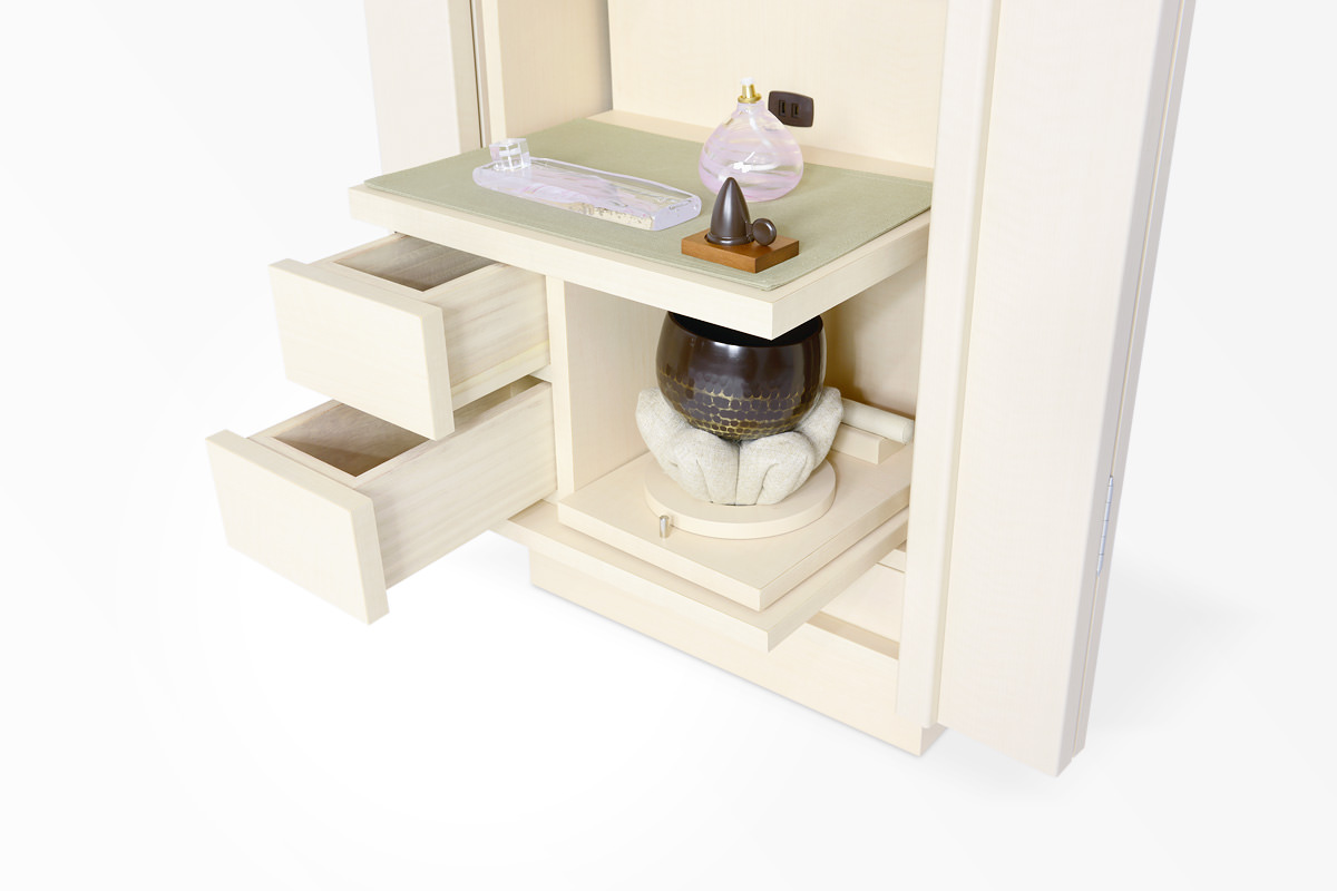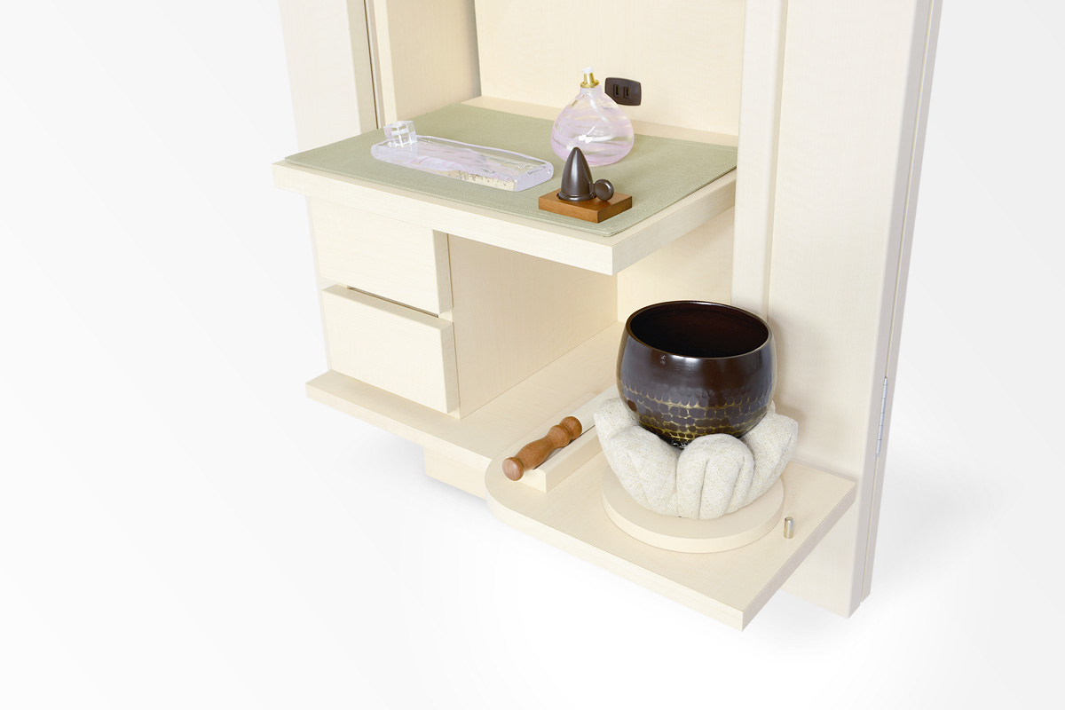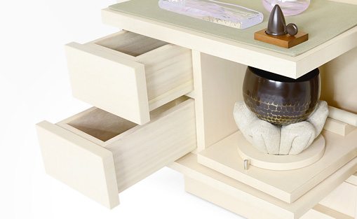 使い勝手の良いこの引き出しは、お念珠・お経本など、よく使われる物を、収納するのに最適です。