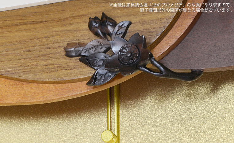 厨子欄間には、一つひとつ手作りで、丁寧に彫込んだ本黒檀の桜彫刻に、
