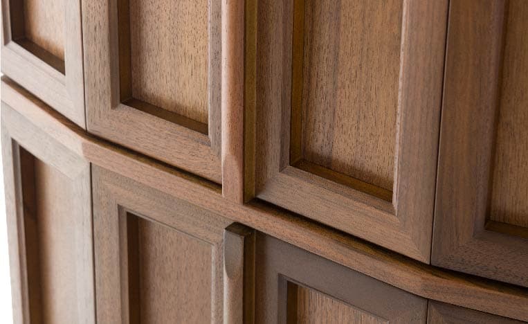 ウォールナットの優しいブラウンを生かす塗装で仕立てました。無垢の木ならではの温もりと、耐久性を具えています。時を経て色がほどよく抜けて変化することも楽しみの一つです。