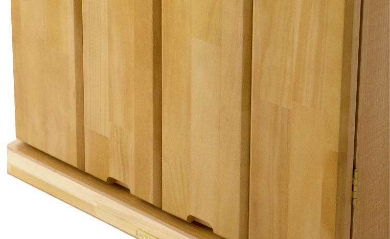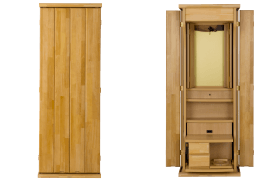 パイン材のナチュラルで清潔感のある雰囲気が人気のお仏壇です。御本尊様を拝せる位置が広く、家族が揃って勤行する時も好適です。