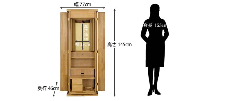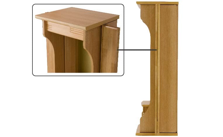 祈るときは引き出し、祈り終えたらしまい、すっきり収納できるテーブルは、リビングなどでも気持ち良くお使いいただけます