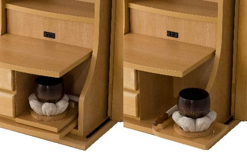 りん台はスライド式を採用。必要のないときはしまい、使うときには使いたい位置に出せます。