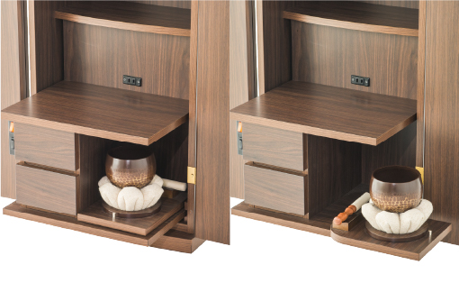 祈るときは引き出し、祈り終えたらしまい、すっきり収納できるテーブルは、リビングなどでも気持ち良くお使いいただけます。