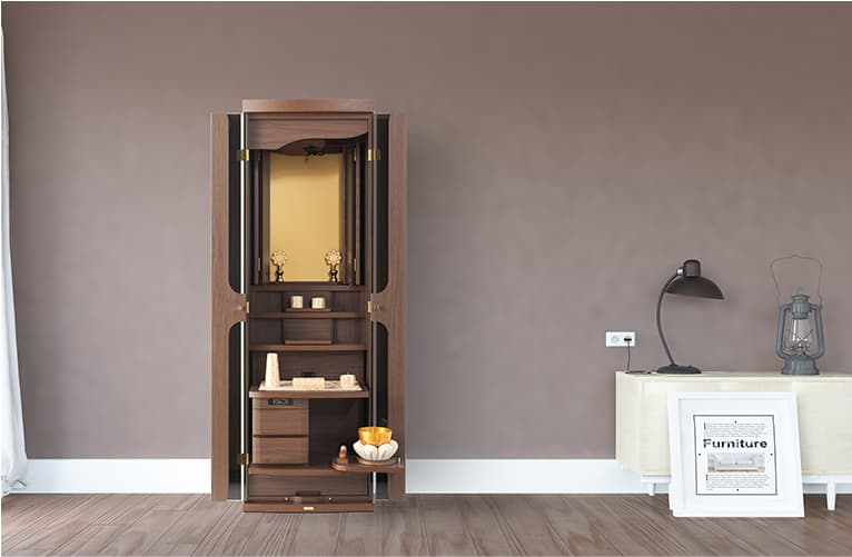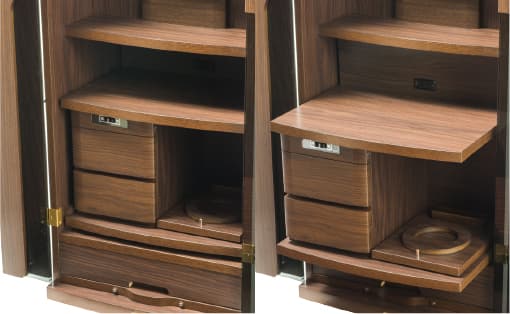 祈るときは引き出し、祈り終えたらしまい、すっきり収納できるテーブルは、リビングなどでも気持ち良くお使いいただけます