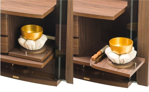 りん台はスライド式を採用。必要のないときはしまい、使うときには使いたい位置に出せます