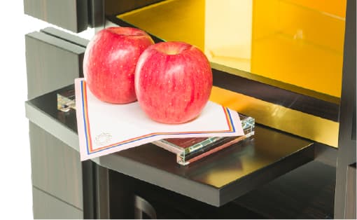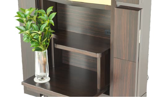 お供えをするときに便利な膳引きは、必要な時に引き出してお使いいただけます。