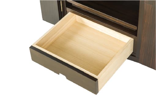 お仏壇の下台には大容量の引出しがついています。お念珠やお経本ほか、普段はあまりご利用にならない大切に保管しておきたいものを収納するのに最適です。