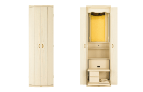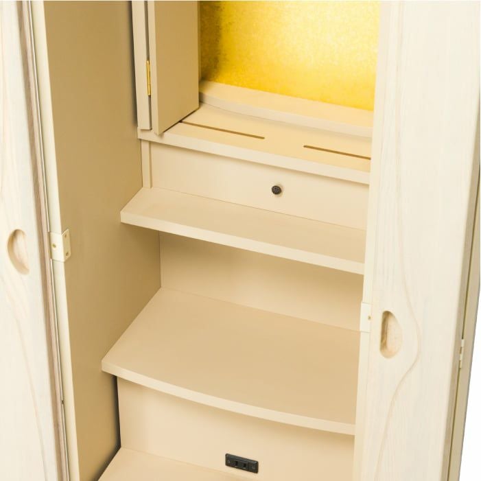 祈るときは引き出し、祈り終えたらしまい、すっきり収納できるテーブルは、リビングなどでも気持ち良くお使いいただけます