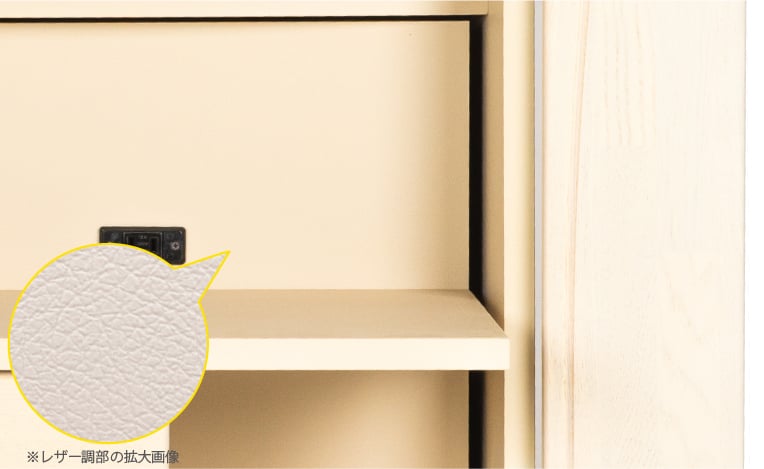 今までにない、内側すべてがレザー調シート貼り。ぬくもりを感じる木の大戸や欄間とのコントラストで、内に秘めるタフさを表現。丈夫で長くお使いいただけます。