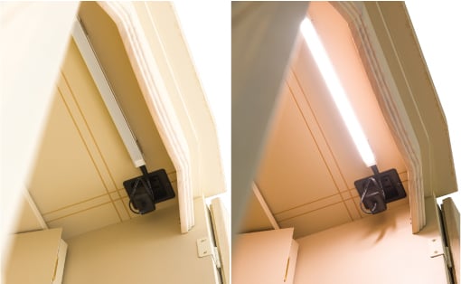 暖かみを帯びた暖色のLEDライトを完備。「省エネ設計」「電球の長寿命」など、とても機能性に優れています