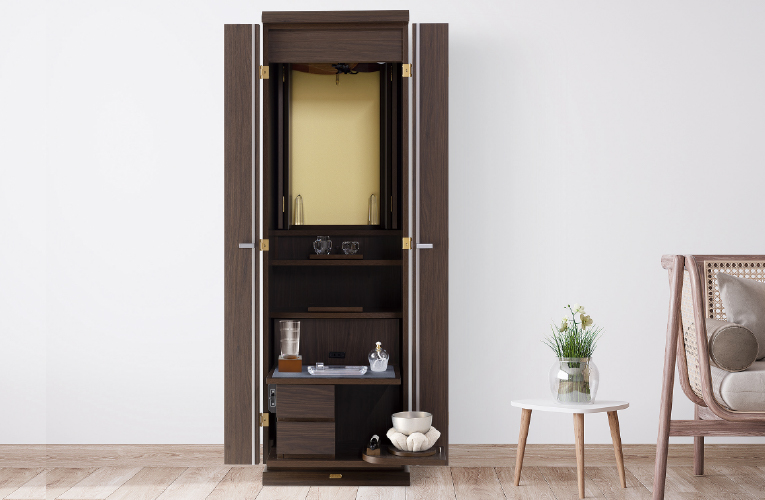 電動扉が付いた、コンパクトさだけでなく祈りやすさにこだわった仏壇です。