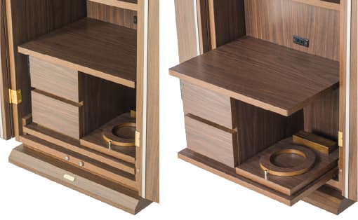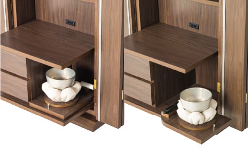 祈るときは引き出し、祈り終えたらしまい、すっきり収納できるテーブルは、リビングなどでも気持ち良くお使いいただけます