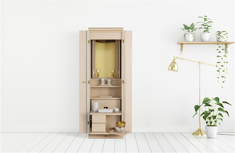 電動扉が付いた、コンパクトさだけでなく祈りやすさにこだわった仏壇です。