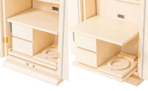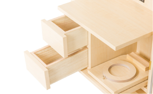祈るときは引き出し、祈り終えたらしまい、すっきり収納できるテーブルは、リビングなどでも気持ち良くお使いいただけます