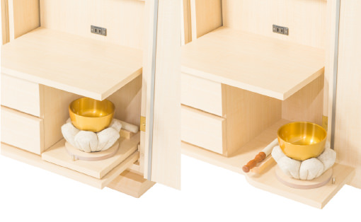 りん台はスライド式を採用。必要のないときはしまい、使うときには使いたい位置に出せます