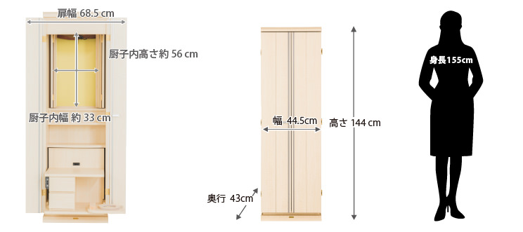 [本体寸法] 高さ144×幅45×奥行き43cm