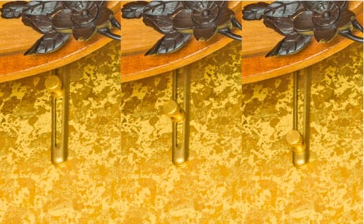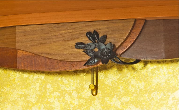 毎日の祈りを応援するために咲く、可憐な"さくら"は、世界有数のジャパラの彫刻師が一点ずつ丁寧に彫り上げた一級品。高級無垢材、チーク・クリキス・ジャンプの3種と組み合わせた欄間は、自然の恵みと芸術から生まれました。