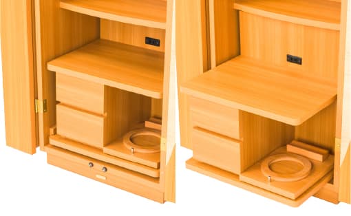 祈るときは引き出し、祈り終えたらしまい、すっきり収納できるテーブルは、リビングなどでも気持ち良くお使いいただけます