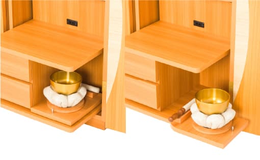 りん台はスライド式を採用。必要のないときはしまい、使うときには使いたい位置に出せます