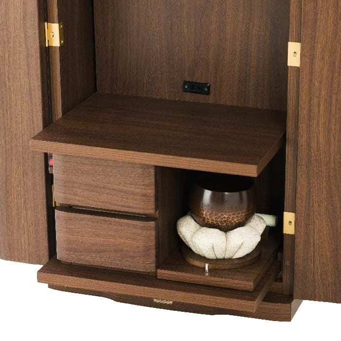 祈るときは引き出し、祈り終えたらしまい、すっきり収納できるテーブルは、リビングなどでも気持ち良くお使いいただけます。