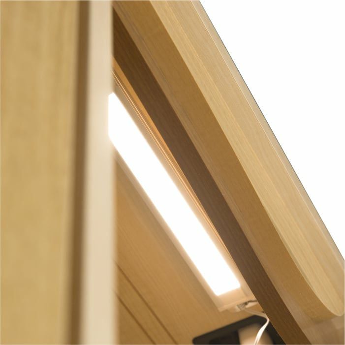 暖かみを帯びた暖色のLEDライトを完備。「省エネ設計」「電球の長寿命」など、機能性に優れています