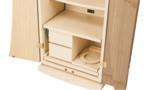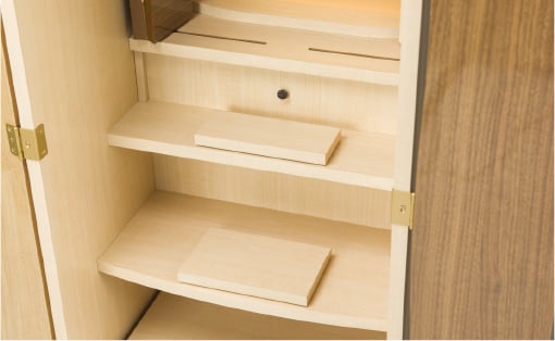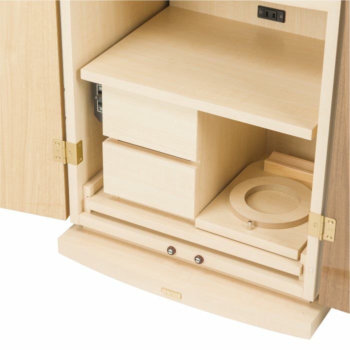 祈るときは引き出し、祈り終えたらしまい、すっきり収納できるテーブルは、リビングなどでも気持ち良くお使いいただけます