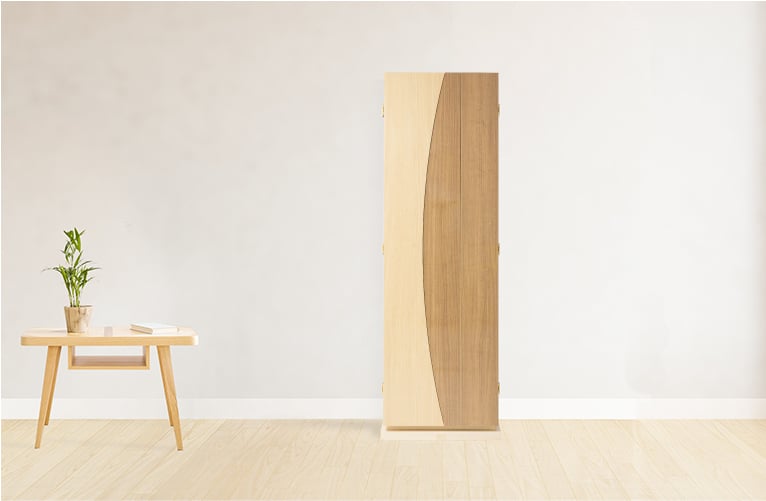 シンプルながら、流れるようなドアデザインに、柔らかなブラウンのアクセント。リビングはもちろん、和室でも。お部屋のスタイルに自然となじむ立ち姿が魅力です。