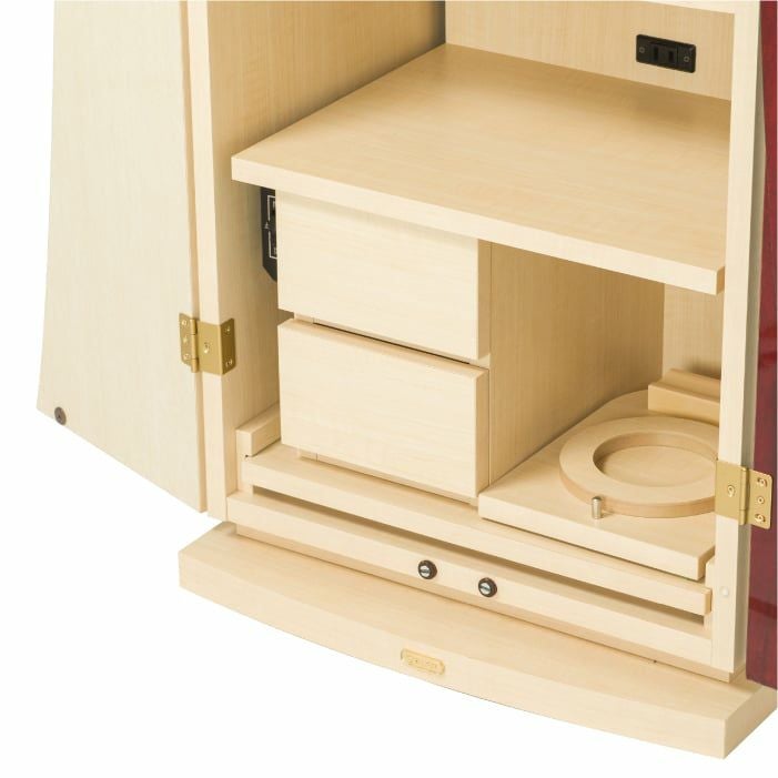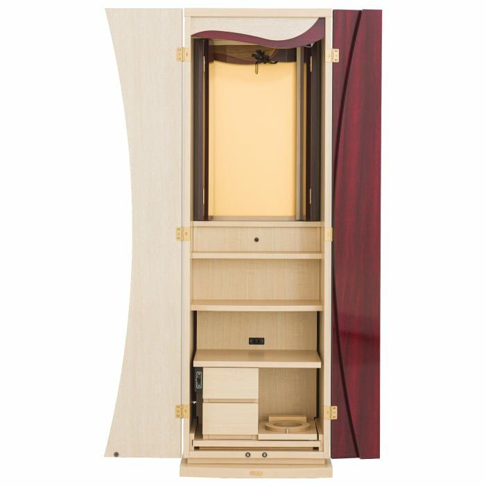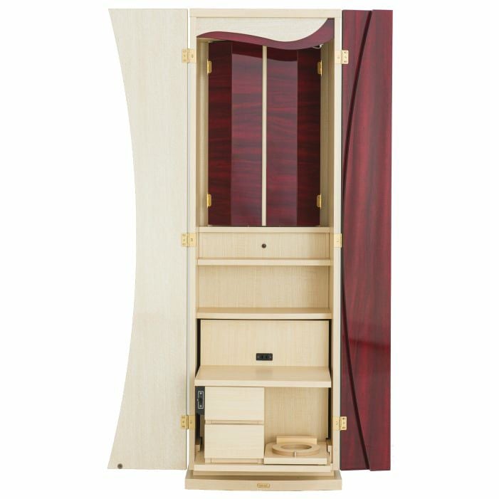 祈るときは引き出し、祈り終えたらしまい、すっきり収納できるテーブルは、リビングなどでも気持ち良くお使いいただけます