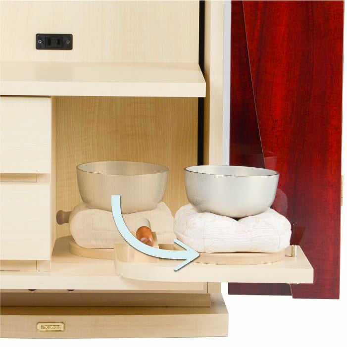 りん台はスライド式を採用。必要のないときはしまい、使うときには使いたい位置に出せます