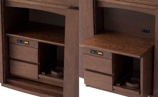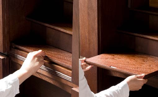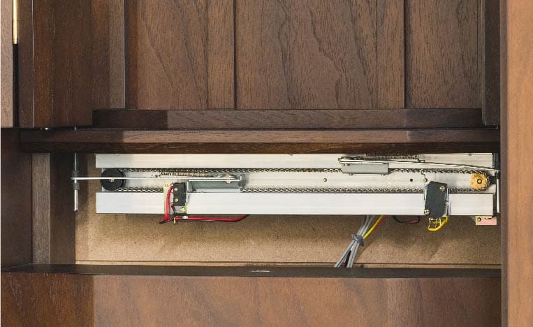 電動式の扉は、開閉がスムーズ。 照明含め、引き出し上のかんたんスイッチで、操作できます。