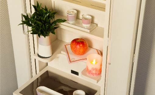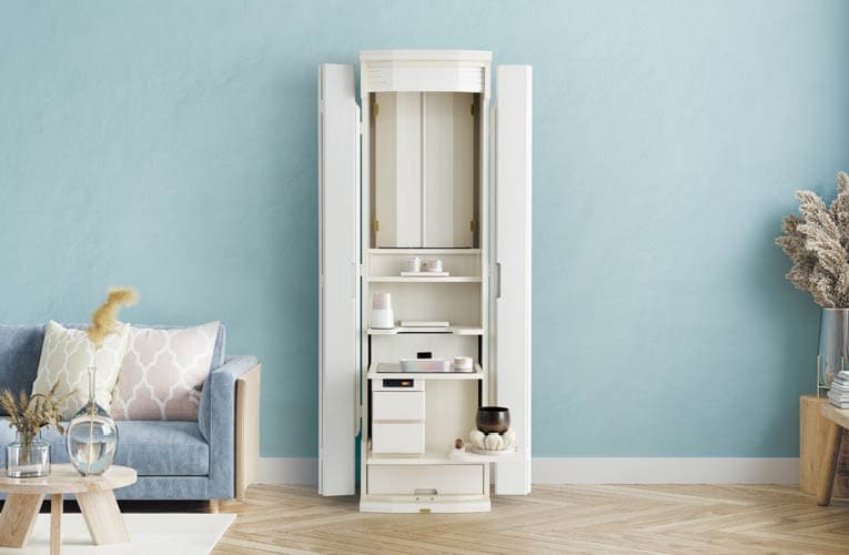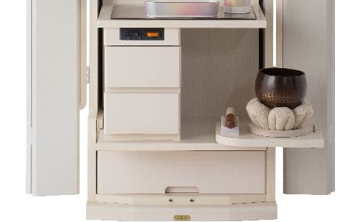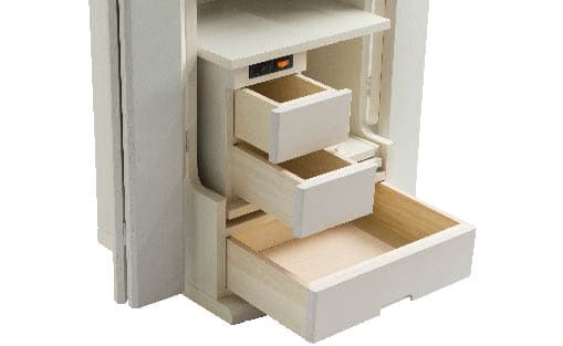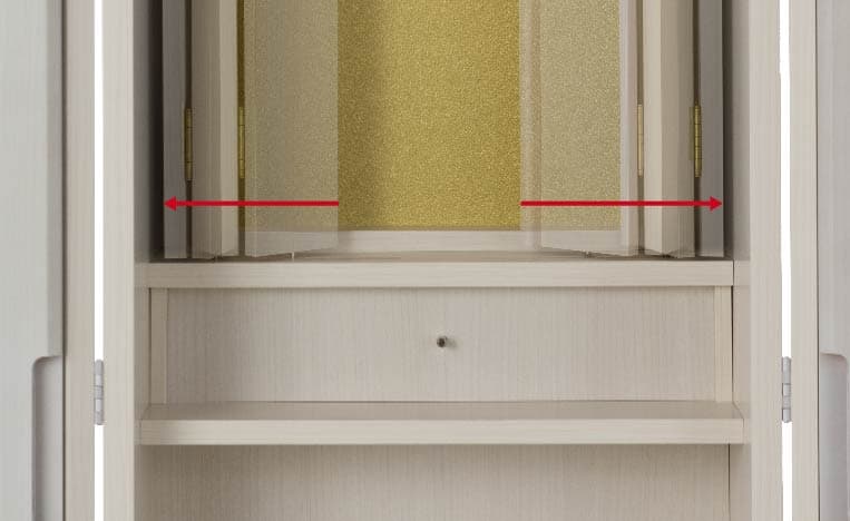 祈るときは引き出し、祈り終えたらしまい、すっきり収納できるテーブルは、リビングなどでも気持ち良くお使いいただけます