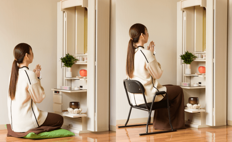 イスでも、正座でも。毎日の祈りにフィットする使い心地を実現しました。経机やリンの高さを調整し、使いやすくしました。
