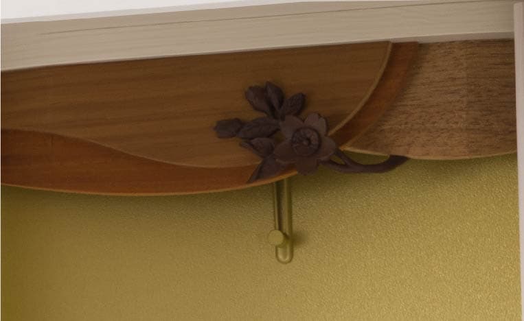 柔らかさを感じるランマは、パイン材。厨子には、毎日の祈りをたえまなく称える桜の彫刻が彩ります。