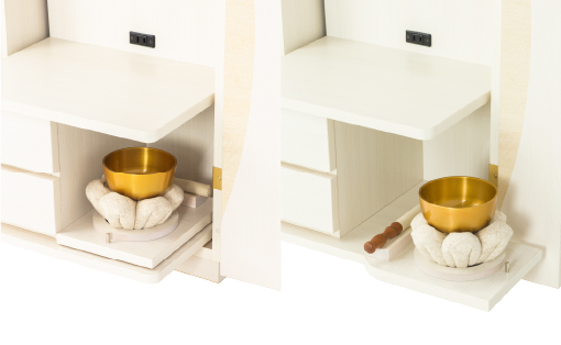りん台はスライド式を採用。必要のないときはしまい、使うときには使いたい位置に出せます。