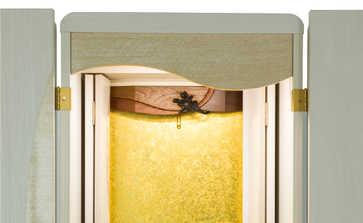 厨子扉が電動式。当社オリジナルの、下置き式モーターのスムーズな開閉で、日々の祈りを応援します。