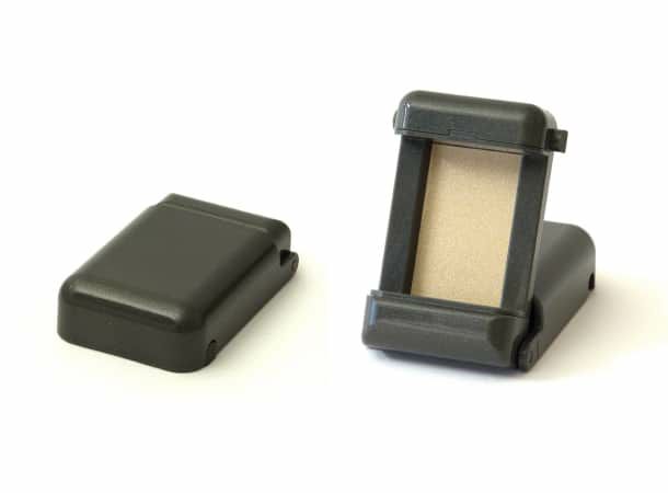 お守り御本尊様の収納・携帯・ご安置と多目的にお使いいただけるプラスチックケースに新色の登場です。うっすらとラメの入った濃いめのグレーカラーのお守りケース。