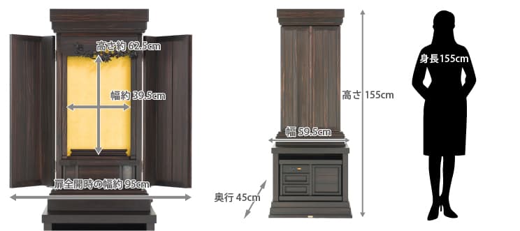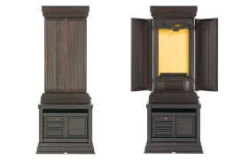 機能 厨子戸オープン開き(パネルスイッチ・電動)/照明付き/経机収納タイプ