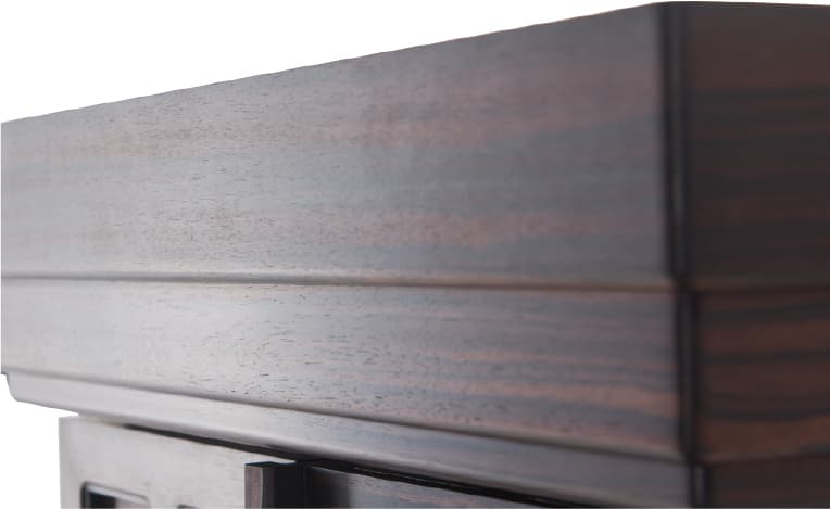 本黒檀材のもつ独特の木肌そのものを最大限に生かすため、オイル塗装で仕上げています。このうすい塗装は耐久性をかなえつつ、木本来の質感やぬくもりを損なわず、木の風合いを存分にお楽しみいただけます。