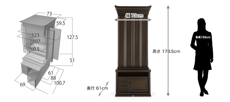 [本体寸法] 高さ178.5×幅73×奥行き61cm