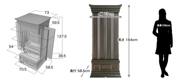 [本体寸法] 高さ164×幅73×奥行き59.5cm