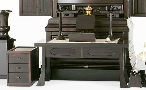 経机に2ヵ所の引出し、線香箱にも3ヵ所で合計5ヵ所の収納スペースがあります。