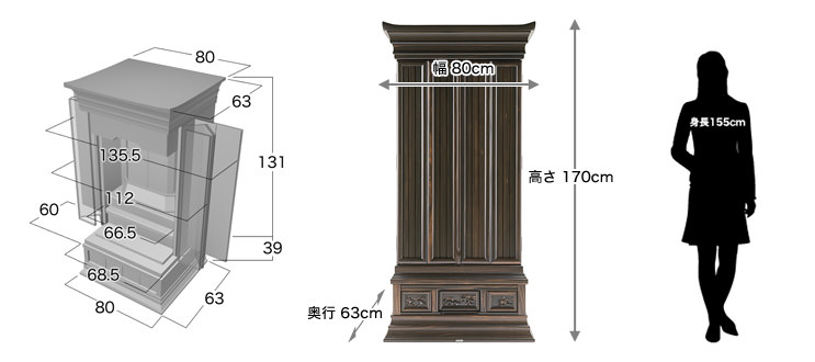 [本体寸法] 高さ170×幅80×奥行き63cm